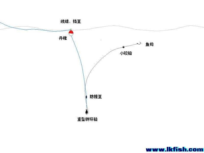 2、咬铅的具体应用方法。在阐述下面的观点之前首先要说明,咬铅的配置没有一个固定公式,必须依据现场的风、浪、流、钓棚、水下地貌、鱼的活性等多种因素综合考虑,一切要从实际出发。因此,下列观点只能作为一般性原则进行参考。