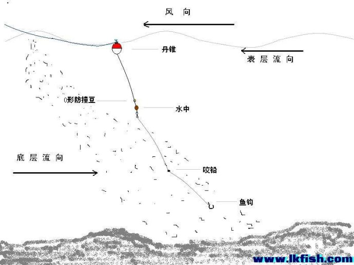 (5)上下水层流速、流向不同时应该使用水中。这种情况使用水中,利用水中的体积可以使钓组准确抓住正确流向。