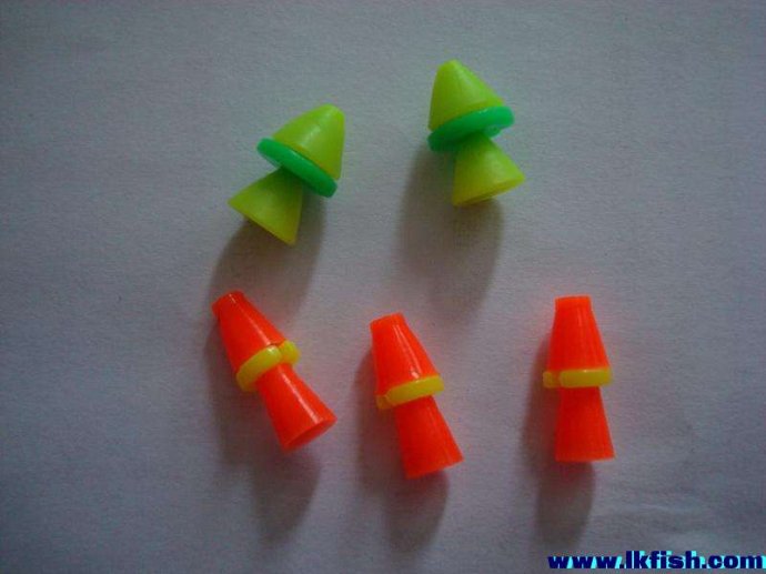 4、潮受。严格意义上讲,潮受的作用同水中一样,也是为了抓住水流,所以,有人叫它潮受水中。我个人觉得也无不可,毕竟二者的用途是一致的,只不过潮受重量轻,在水中几乎没有下沉重力,只能凭借自身的高水阻形状捕捉水流使钓组伸展、下沉。在使用中,潮受多数用在全游动钓组上。