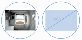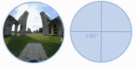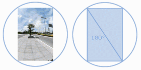 鼓形,两边被切的鱼眼图像: 上下弧线处180度 ![]() |