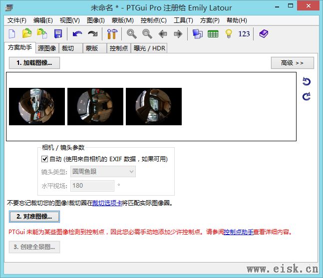 根据提示,点击“加载图像”,将拍摄的全景图原始素材导入,如下图:
