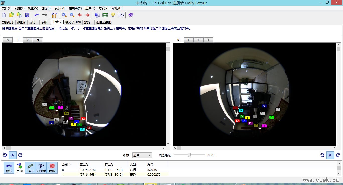 在上图我们一共找了若干个两张图片重合的点并作了标记,如此这般,需要对全部有可能有重合的图片都至少标记3个“控制点”。
