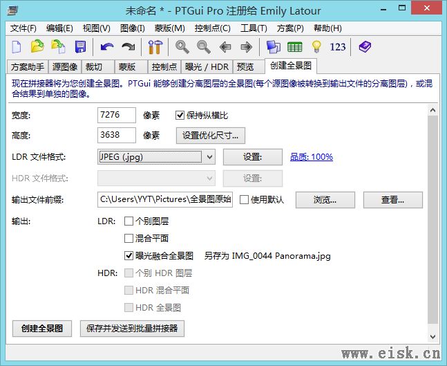 设置输出的文件目录,点击“创建全景图”,我们就获得了加工好了全景图片。