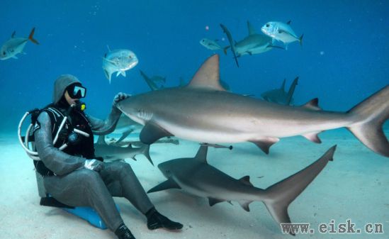 在来自澳大利亚新南威尔士州的Benjamin Buchan看来,鲨鱼其实并没有看上去那么恐怖。在一位鲨鱼专家的指导下,Benjamin在巴哈马群岛给一群加勒比礁鲨喂了食。对于普通人来说,像Benjamin这样敢在有成鲨鱼出没的水域里下水就已经很大胆了,更不用说去触碰它们,给鲨鱼喂食更是不可想象。