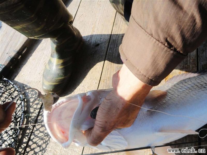 上到鱼排,已近中午。小李看了俺们的小矶杆和筏杆后,连连摇头,说这里没有小鱼,全是大鱼,并拿出他的杆子给俺们看——老天,铁板杆,8000的轮子,8号pe线,超大的坠超大的钩,大块鱼肉做饵……这是大青针的装备啊!以前来这也没碰过这么夸张的鱼呀,俺们将信将疑。