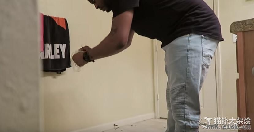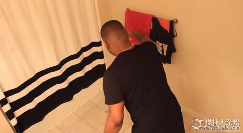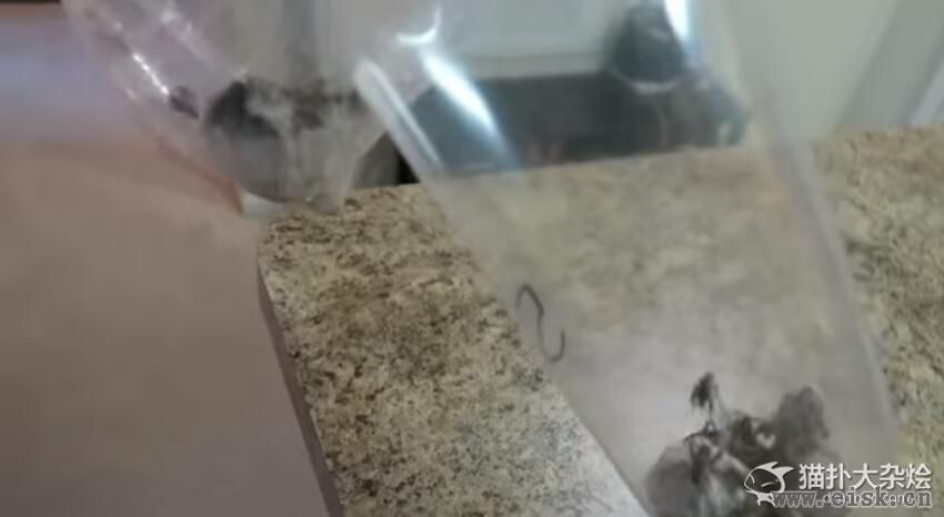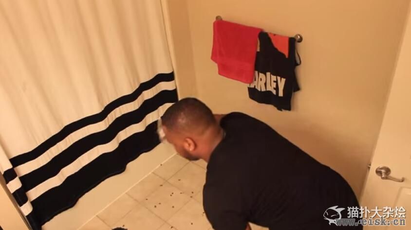 只见小哥拿了几袋虫子,走到浴室外边,然后打开包装袋,使劲往地上撒。可惜画面有点模糊,看不太清楚,不知道是什么虫子
