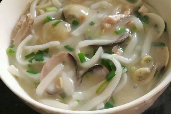 埠场的刀切仔是当地美食的代表作,先用米粉搓成块状,然后用刀切成条状,然后放上各种各样的料,最经典的是放虾皮来煮,配上白切梅肉或者猪利、粉肠来吃,正点!