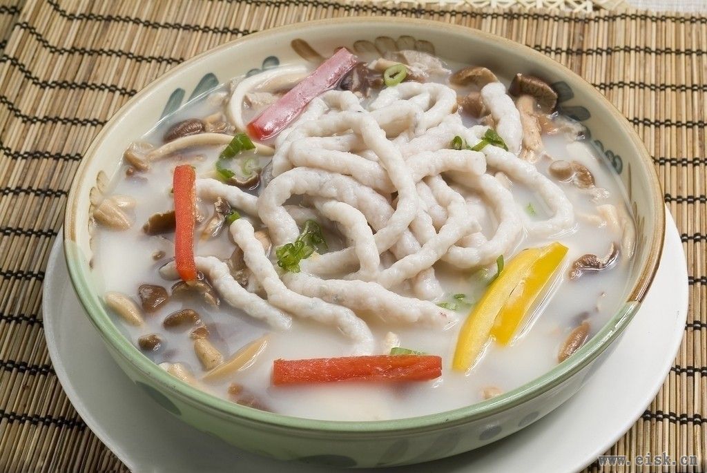 鱼面是闸坡名小吃之一,知名度相当高,它的独特之处是软、滑、甜、爽。闸坡鱼面的做法挺讲究的,新鲜鱼肉切成寸把宽的鱼条,放在大圆砧板上反复地剁,但是不能剁得太稀。外地游客来闸坡旅游,鱼面是不可不尝的美食。