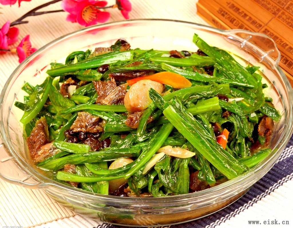 八甲镇盛产荬菜,当地人主要的吃法是豆豉鲮鱼炒荬菜。荬菜富含维生素A、B1、B2,是生食蔬菜中的上品,有“凤尾”之称,是八甲镇比较出名的菜品。