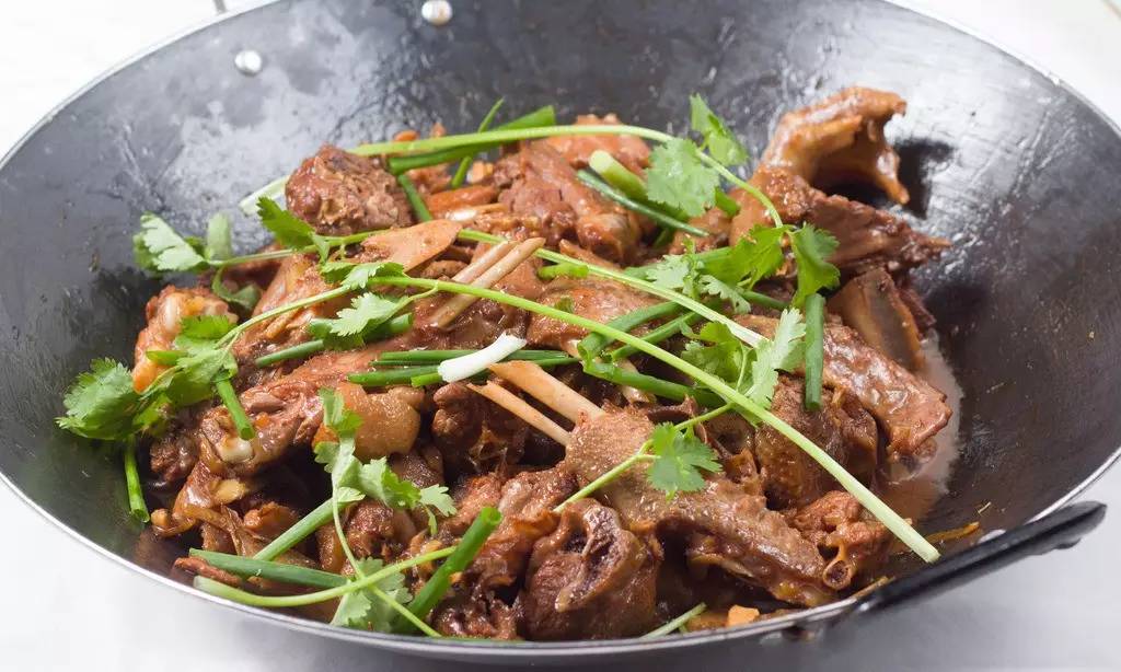 新洲焖鹅是典型的广式焖鹅,用酱料腌过的鹅肉与姜、蒜、烧肉同炆,锅内热气腾腾,肉香四溢,挟起一块鹅肉,沾点腐乳等调料,入口浓香,丝毫不觉肥腻。