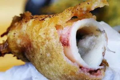 上洋鱼玛远近闻名,煎鱼玛重要环节是配馅,虾、蚝、鱿鱼是首选,油滚的时间也要把握得很好。不仅阳江本地人喜欢吃上洋鱼玛,外地游客来到这里,如不吃上几个上洋鱼玛,会引为憾事。