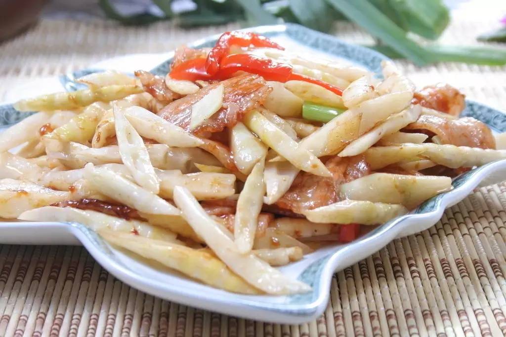 新圩镇东水山盛产竹笋,东水竹笋闻名遐迩,当地人吃竹笋比较普遍的吃法就是竹笋炒肉片,简单的烹饪方法最大限度地保证了竹笋的清香,竹笋与肉片,一个大素,一个大荤,互为补充。