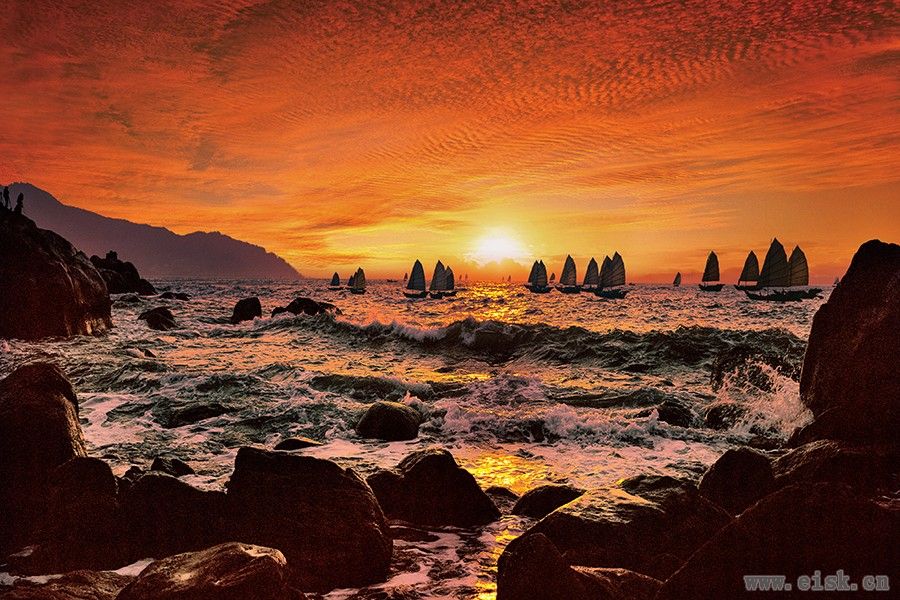 登高望远,或观海上日出日落、朝晖夕阳;或观碧海蓝天,水天一色;或观渔舟点点,穿行于波峰浪谷,或观青山、碧水、白沙,恰似长画入卷。白浪轻吻沙滩,惊涛怒拍岸礁,卷起千堆雪。