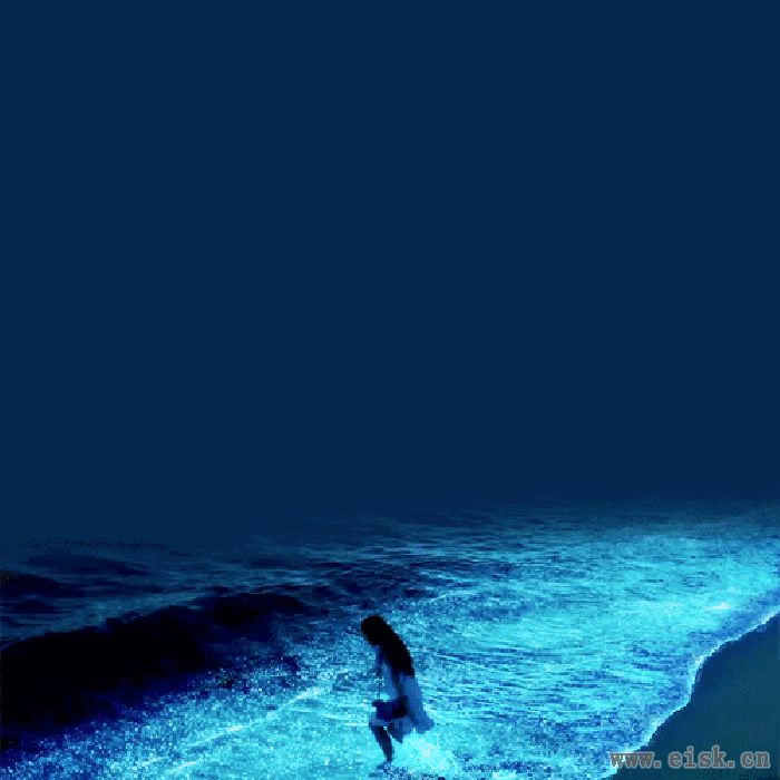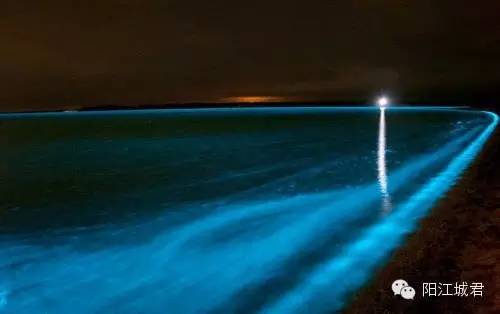 到晚上荧光藻受到海水的刺激