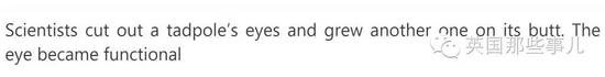 他们通过研究发现..蝌蚪眼部的神经有一半与脊髓相连,而另一半则是连接到胃部附近..