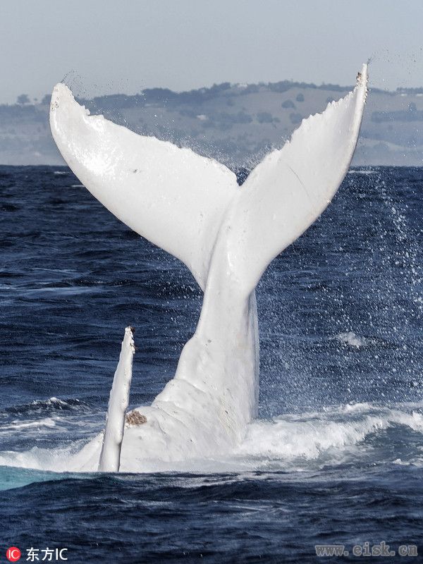 37岁摄影师Craig Parry在澳大利亚新南威尔士州拜伦贝拍摄到罕见白化驼背鲸Migaloo,很少有摄影师能拍到这条著名的白化鲸鱼。东方IC