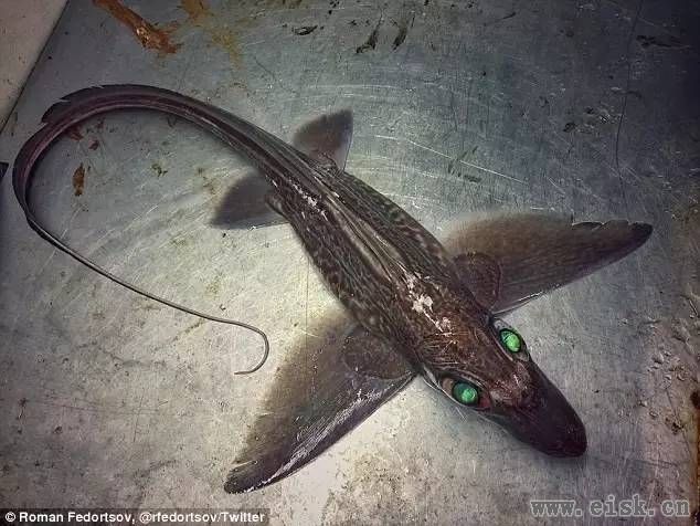 这种鱼有荧光绿的眼睛,这样更能帮助它们在深海里存活。