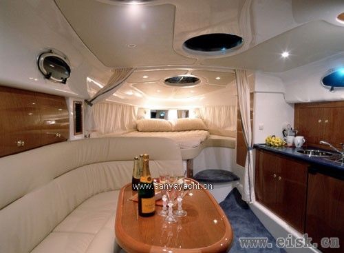 SUNRUNNER(圣伦娜)3700 LE的出现重新定义了运动型游艇的理念,它的典雅精致让人叹为观止--宽敞的会客厅,两个豪华客舱,欧式风格厨房,齐全的配置—液晶电视、DVD、音响、冰箱、电炉、微波炉、卫生间、浴室、冷热水、地毯和齐全的安全装置。