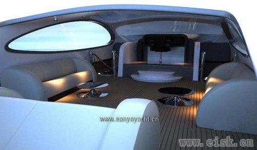 这项目前还处于概念阶段的创意在船尾设计了一座嵌入式车库,可以装入一辆风格匹配的定制豪车。目前仅知道该车将搭载880马力V12引擎,极速370公里/时。