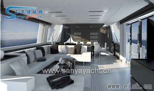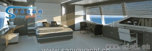 一个特有的新亮点,对此类游艇而言是独一无二的,是以提升游艇内部居住条件为目标而开发,通过在船艏附近主卧舱的位置采用宽体型设计,这一特点使得舱内空间显著增加,同时创造了超级游艇典型的全新外部甲板通道。