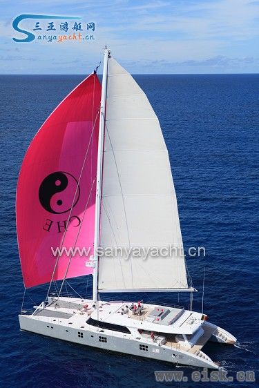 在欧洲客户委托SUNREEF船厂制造这艘超级大双体帆船后两年,被命名为“114 CHE”的它在波兰格丹斯克SUNREEF船厂成功下水。它是迄今世界上最大的装有单桅索具的双体帆船,同时也是世界第二大的多体帆船。