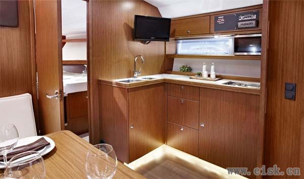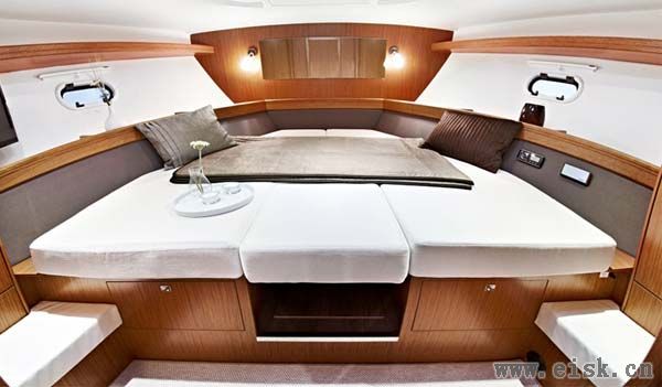 休息区、沙龙餐桌、及设备齐全的厨房使在海上烹饪也能成为一件真正的乐事。浴室的储藏空间实用性极高,宽敞并做工细致。主卧舱还设有一张大的双人床。