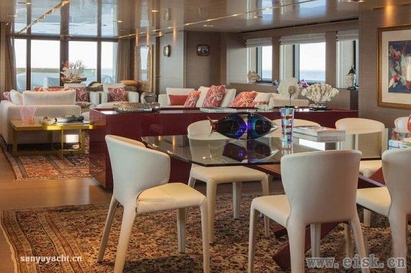 船东和宾客们能在后部甲板露天用餐,并欣赏美好景色。时尚和明亮是沙龙区的特点,色调柔和的家具和装饰品将这一空间装点的格外温馨。