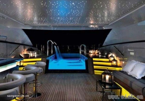 船上的日光甲板则完全为让乘客享受户外生活而建。这里有游泳池和直升机停机坪,顶部还安装了disco灯光,在这里乘客可以做任何事情,尽情享受Numptia带来的奢华生活。
