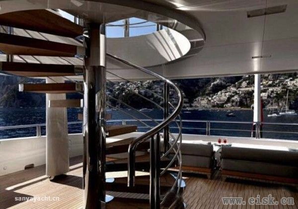 设计师TommasoSpadolini在为该艇赋予灵魂的同时完美地与船东的个人意见相结合,从而产生了在各方面都非常完美的设计。艇上最吸引人的亮点,便是其在5层甲板上均放置了顶尖的服务设施,例如,船东进餐的区域,每一层甲板都有相应的配餐室,这样的服务真的十分周全。