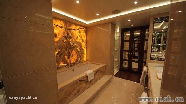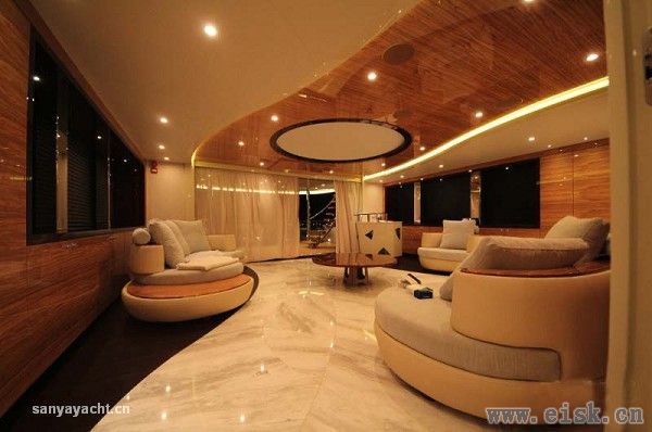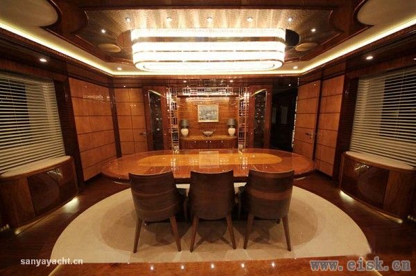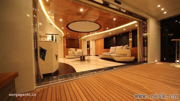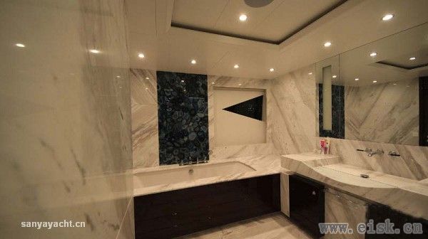 与外部轻快亮丽的格调不同,内部空间则透露着典雅、时尚的设计风格。高反光度的品质材质的选用,不仅增加了空间的整体亮度,更彰显了主人不俗的品味。由外部进入舱室内的瞬间,宾客们可能会惊叹于内外强烈的反差。事实上,虽然H2团队赋予Elada具有鲜明个性的外表,其内部正如Johnnie Horsfield所描述的“船东对于内饰的永恒和传统的要求非常明确”。