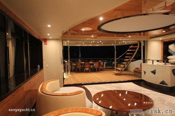 45米半排超级游艇Elada由土耳其船厂Bilgin制造。在2012年合同签订后,她于今年上半年完工,她是Bilgin船厂在2012年发布的40米游艇M的升级版。大名鼎鼎的H2工作室负责其内、外观设计,其与众不同的逆船首不仅充满了浓重的H2风格,更让其在茫茫大海上具有极高的辨识度。