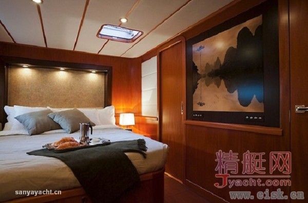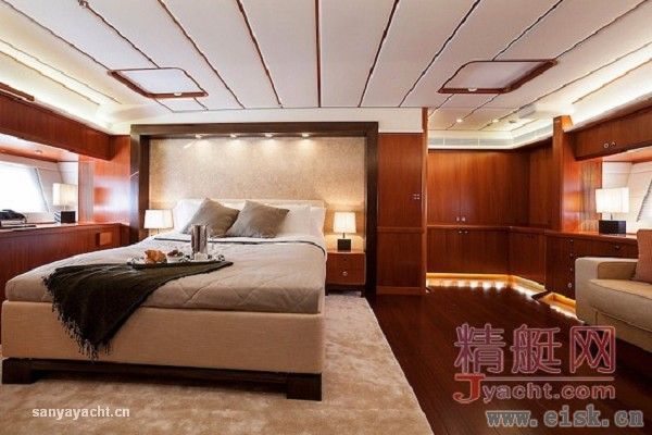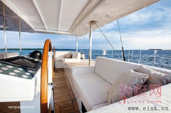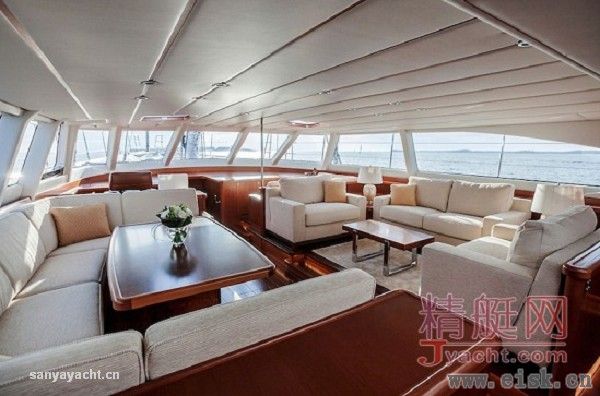 Ti-Coyo十分引人注目的特征就是她宽敞而华丽的内部空间设计,完全为满足船东的个人品味与要求定制而成,这其中包括重新设置了主客舱的位置以及客舱的分布。而结果就是,这艘超级帆船拥有了无可挑剔的独特个性。