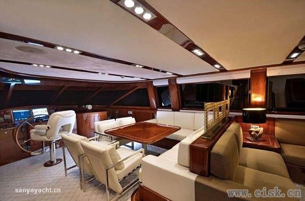 另外一个引人注目的地方是Glorious的飞桥,飞桥上有遮阳棚,驾驶区有两个舵位,空间也足够大,还摆放了沙发。这里是整条船上欣赏海景最好的地方。