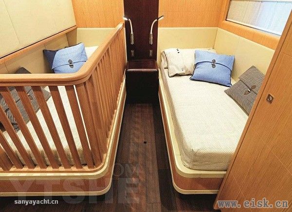 主沙龙由大休息室和舒适的正餐厅组成,风格新颖独特,奢华而颇具时尚感。休息室里的L形大沙发配有柔软的靠垫,线条优美的扶手椅和藤编茶几与沙发形成整体,统一采用浅灰配色。随意而不失精细,是放松休闲的绝佳场所。休息室和餐厅两侧分布的宽大舷窗,保证了充足的采光和开阔的视角。浅色调的正餐厅设计现代时尚,深色橡木和浅色皮革是最主要的两大装饰元素,背景板上复制的18世纪地图也颇吸引眼球! 主人套房位于前部,观景视野绝佳,静谧的灰色能纾解人心情。这里的精美和优雅程度不逊于主沙龙,与船等宽的豪华套房带有宽敞的休息室,舒适的卧室和衣橱是这间套房的重要组成部分。 下层甲板上分布着宽敞而独具一格的VIP房、一间双人房和一间可作为儿童房的双床房。当然,您也可以灵活地把双人房改成双床房,这样每位宾客都有自己独享空间,舒适而惬意。这些房间沿用了整体的浅色基调,采用了和主沙龙区同样的配色及材质,比主人套房更显活力。 下层甲板的客房展示了M&A's高雅现代、热情好客的特点。打磨精细的橡木门、柔软的皮革床头板和柚木地板,营造了通达大气的整体氛围。所有客房明亮而奢华,且都带有齐全的套内设施。双人房浴室宽敞而VIP房配有宽大浴池,储藏空间充足。为了满足宾客的额外需求,VIP房内还可提供额外铺位。 除了舒适的葡萄牙式甲板,室外还有多处可供休憩、娱乐,或者仅仅只是打发时间。主甲板后部配有全套露天用餐设备和一张大餐桌,后部的配套座椅能让宾客们在此欣赏海景、享用美食。如果您想消暑潜水,偌大的游泳台能帮助您实现这一想法。在M&A's室外甲板上,最受喜爱的地方毫无疑问是飞桥。飞桥后置有日光浴垫、多处休息区、早餐区以及设施齐全的吧台,所有角度都能无遮挡欣赏海景。无论是想要拥有古铜色肌肤的男士还是怕受紫外线干扰的女士在这里都能惬意地享受。 M&A's可容纳多人住宿,她集宜居、灵活和运动感等特点于一身,时尚的设计、豪华的装饰以及贯穿所有空间的和谐氛围让宾客们体会到宾至如归的感觉。客人的愉悦和舒适是M&A' S的追求,所有奢华的附加并未喧宾夺主,脱离最基本的主旨——绝对的放松。