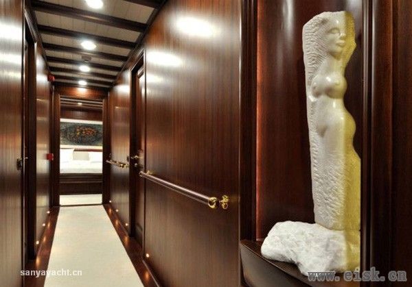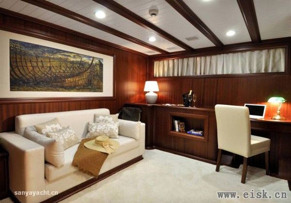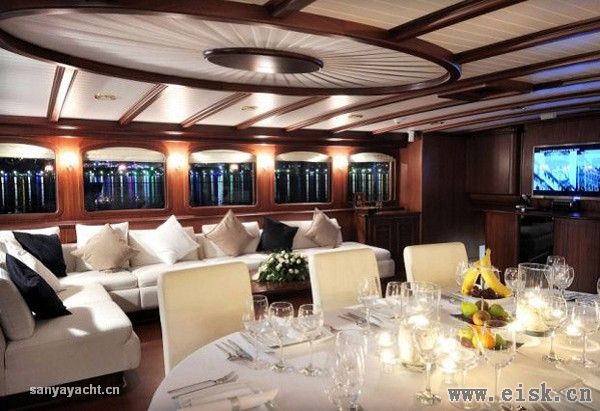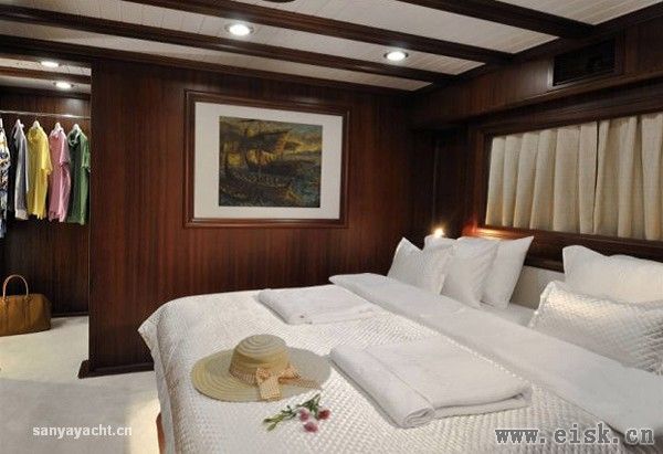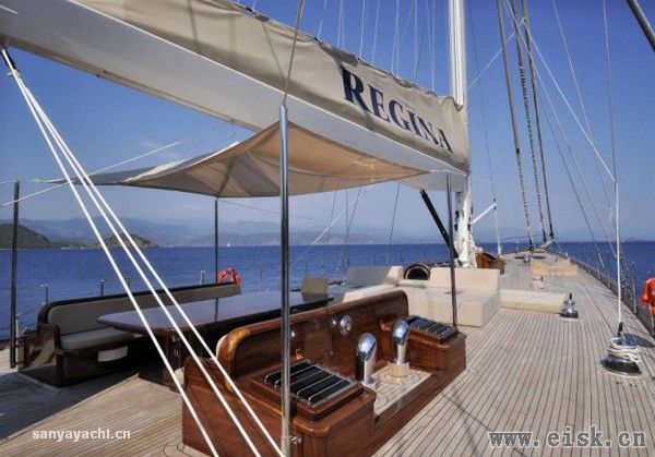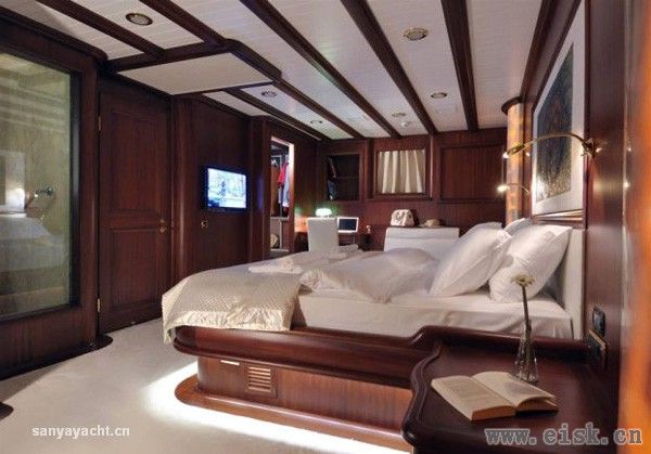 Regina上有3间主客舱、2个大床舱和1个双人舱,可招待12位客人。3间主客舱里各有独立的更衣室,装置了********、DVD和音乐播放系统。船舱内的装饰风格高雅时尚,住着非常舒服。
