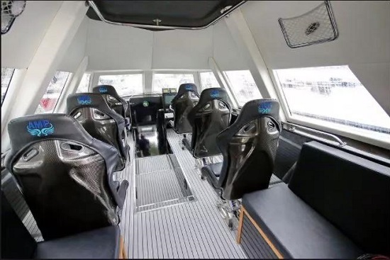 这艘快艇的巡航速度可达40节,最高时速为惊人的60节,一次最多可以乘坐10人。