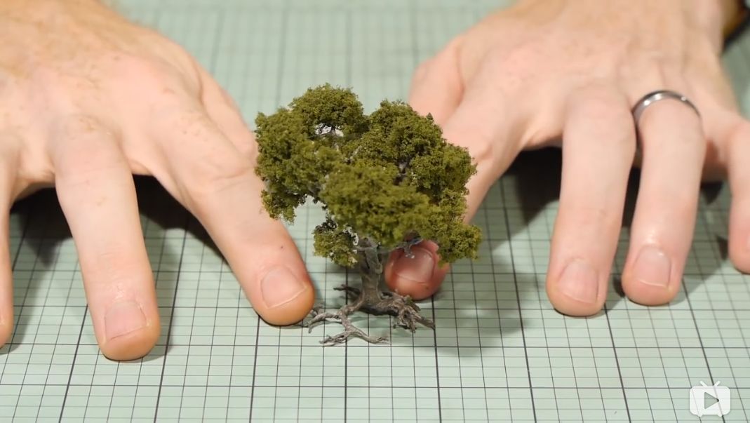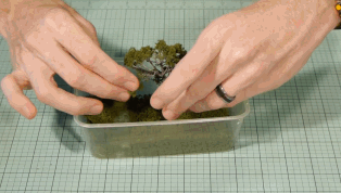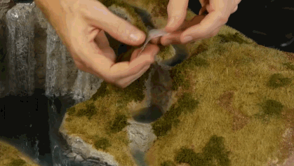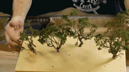 在经过上色,烘干褪色,染沙,喷漆,沾草粉