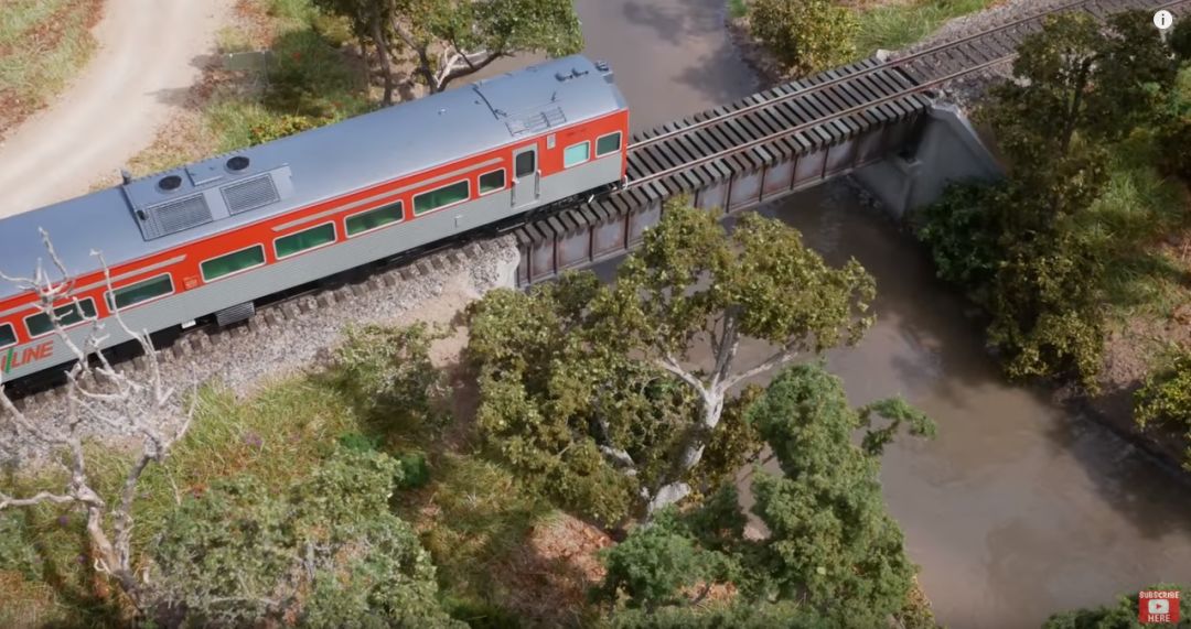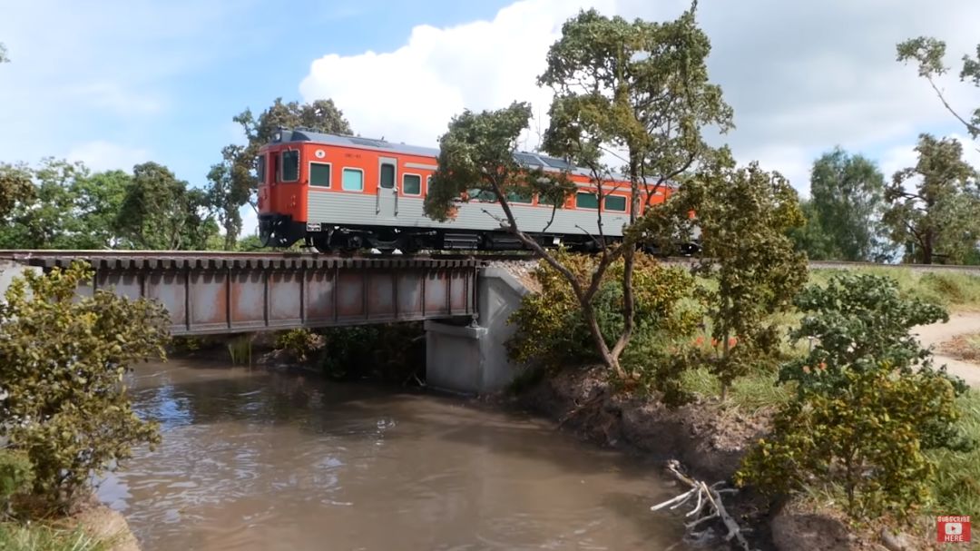 火车从河面上驶过,简直跟实物一模一样!