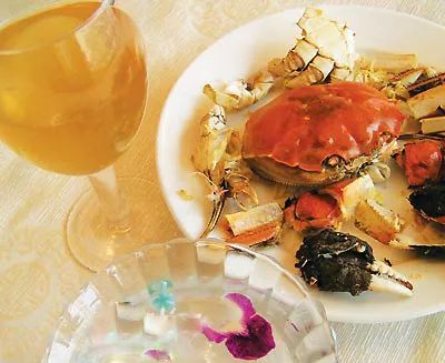 以此吃法吃出来的蟹壳,虽未必能完整地拼回一只蟹的形状来,却也铺陈得条理分明,丝肉不剩。吃完蟹壳洗一洗手,再喝上一杯暖融融的姜茶,一顿饭的时间就吃一只大闸蟹,也觉得酒足饭饱了。