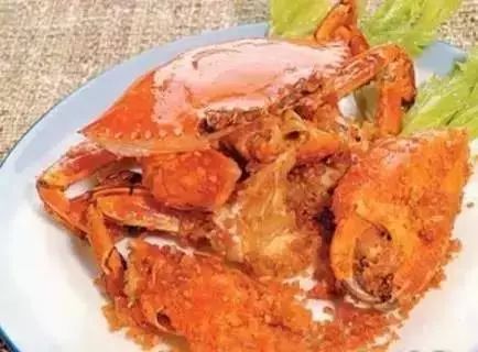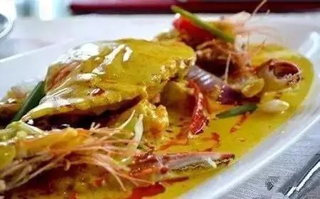 材料:花蟹2只、洋葱1颗、葱1根、姜1块、生菜叶2片、柳丁1颗、红辣椒2条、淀粉适量、盐 3小匙、白胡椒粉少许、酒2大匙、糖1大匙、咖喱粉2大匙。