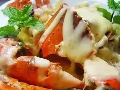 4、将蟹放入3中,再加入起司煮2分钟勾芡调匀即可。