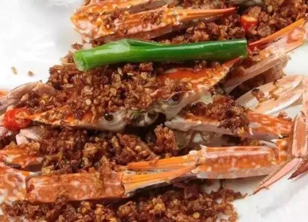 材料:蟹一只、豆豉半两至一两、红辣椒2两、蒜饵2两、奶油2钱、蚝油、糖、鸡精粉适量。