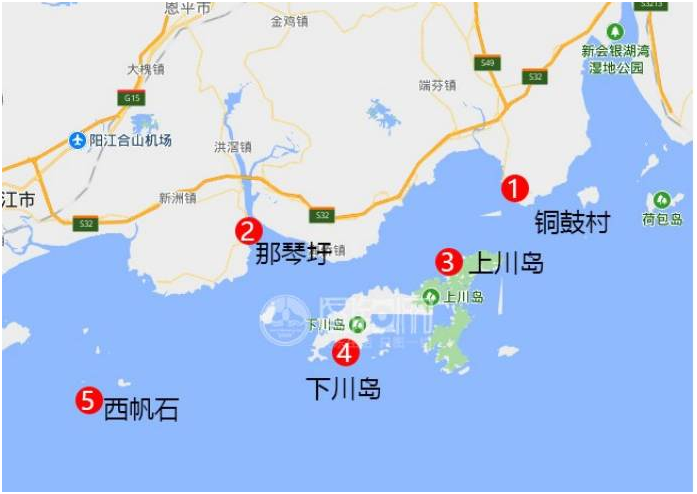 来图看看上川岛的位置,哦?原来就在下川岛的旁边。