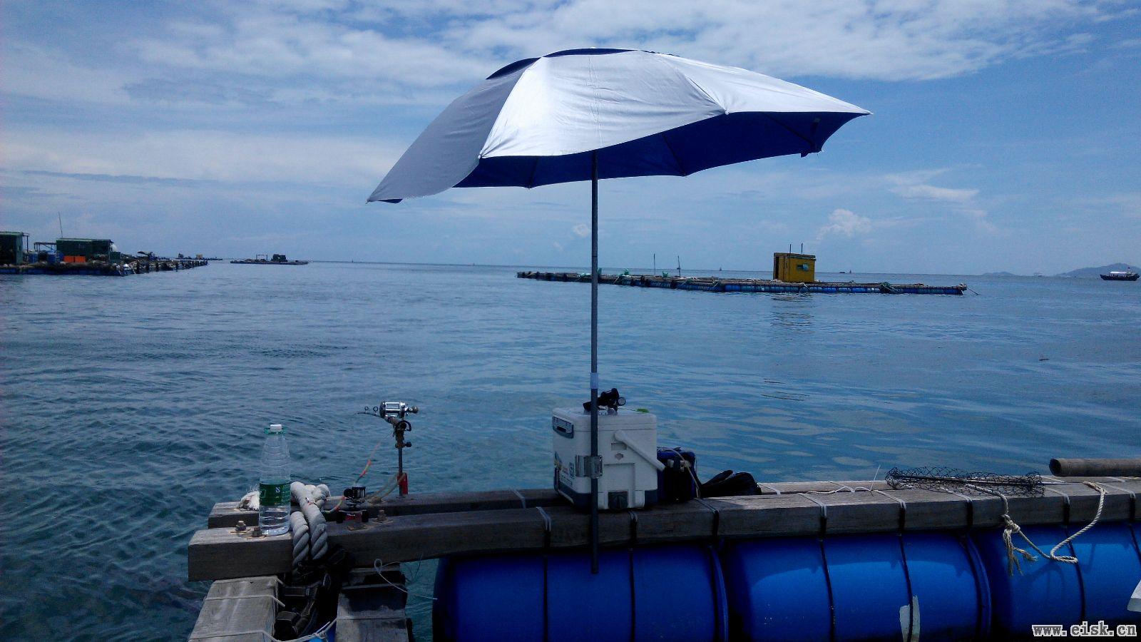 太阳伞实在是太有必要了,为什么之前都没有想过呢......不过风大的时候要坐到箱上固定,有了这神器钓鱼钓得我很舒服,中午都没压力。一天下来2支灌装可乐就可以了,不过脸还是被晒红.....估计要密封才能做到全面防护。