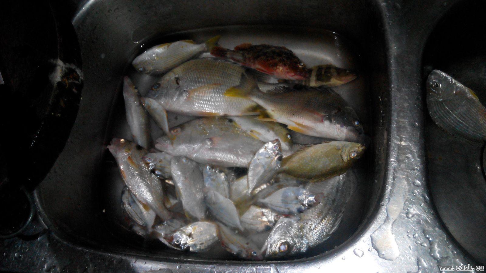 最大的黄脚和头鲈6-7俩,其他小鱼无数